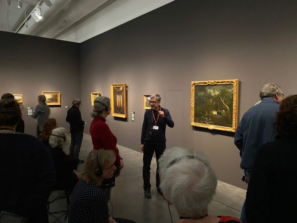 Kurator Holger Birkholz führte uns exklusiv und ging natürlich besonders auf „unser“ Bild ein: Der Friedhof. 1825 malte Friedrich dieses Bild und es ist unschwer zu erkennen, dass das Eingangstor zum Trinitatisfriedhof Friedrich zu diesem Gemälde inspirierte.