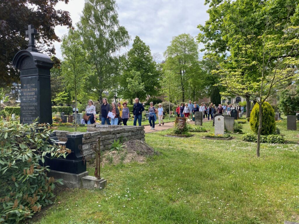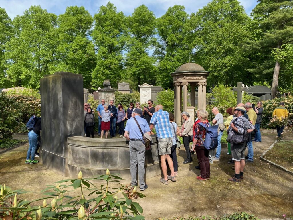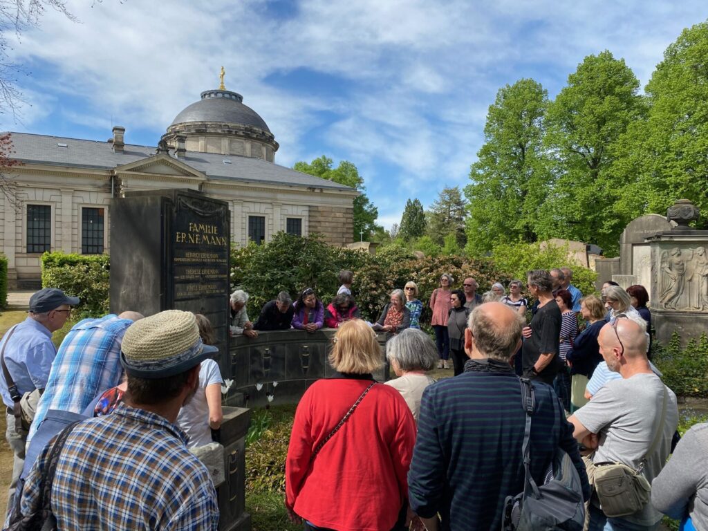Bei sommerlichen Temperaturen luden Andrea Helbig und Karin Dechandt zum Sommerspaziergang über den Johannisfriedhof ein. Es war eine Premierenveranstaltung! Der Friedhofsoberinspektor i. R. Gerd Kropp, der viele Jahre über diesen Friedhof führte, kann dieses Ehrenamt aus gesundheitlichen Gründen leider nicht mehr ausführen. Die beiden Damen des Freundeskreises übernahmen deshalb den Staffelstab und schlugen sich überaus wacker! Sie versorgten die 40 (!) Gäste mit vielen Informationen zu den verschiedenen Grabstätten und den damit verbundenen Schicksalen und Biographien und machten darüber hinaus mit Aspekten der Dresdner und speziell Tolkewitzer Geschichte bekannt. Auf Teil II der Führung, sie findet im Juni statt, können wir gespannt sein. Es ist schön, dass es mit den Führungen über den „Johannis“ nun wieder weiter geht!